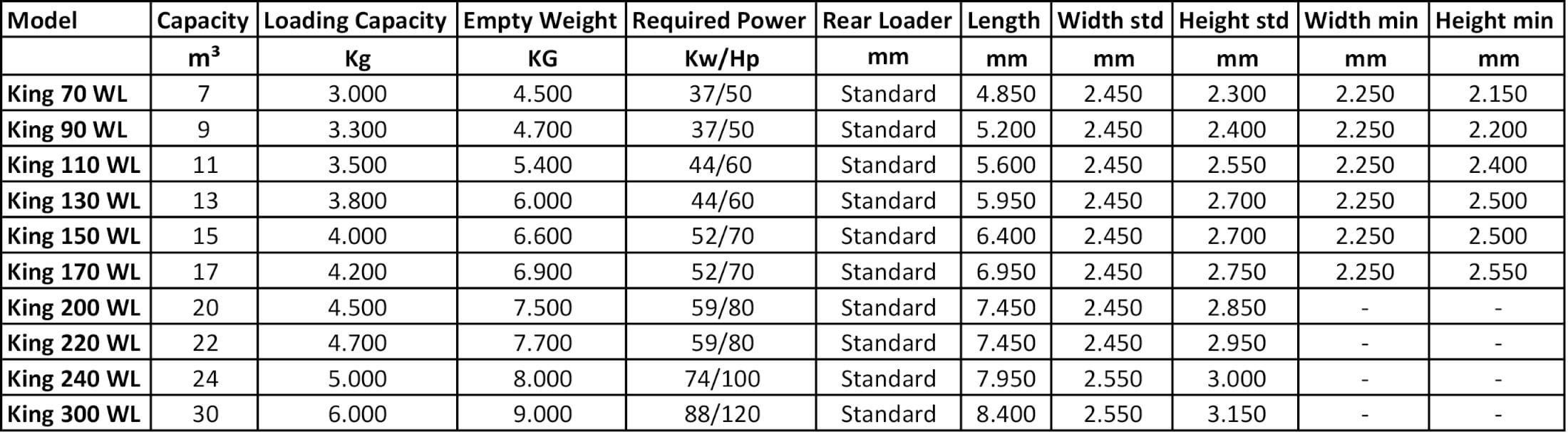 The King model, in the WL versions, comes in 10 cubic volumes: from 7 to 30 m³.